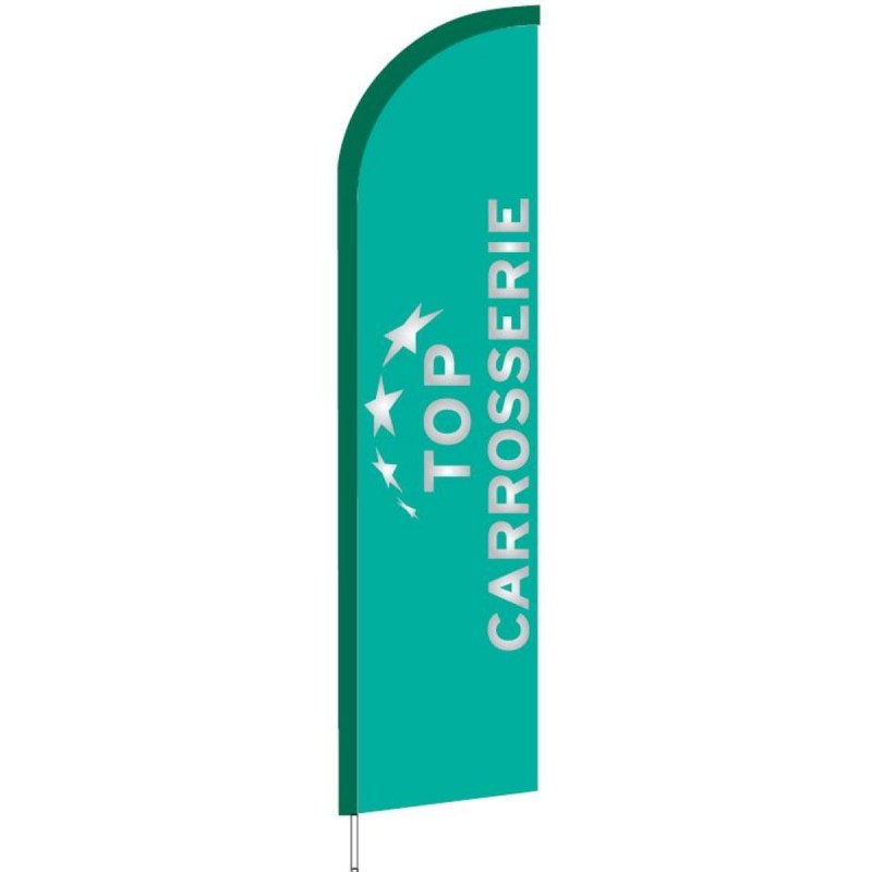 Voile plume 3,50 x 0.80 m - Fourreau élastique vert - Sangle et mousqueton - Livré avec pied autocal et mât télescopique en alu 4m