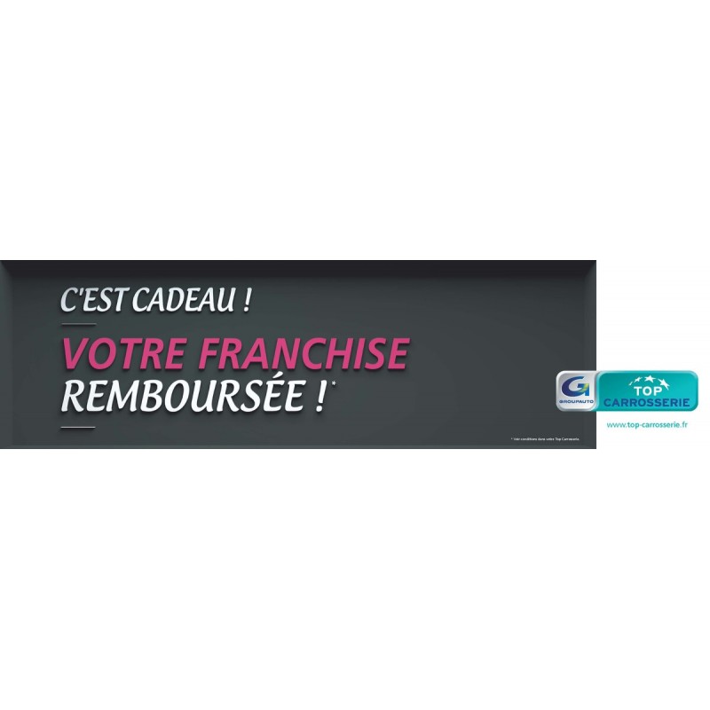 Banderole avec fourreaux à disposer à l'intérieur ou l'extérieur afin de communiquer sur le remboursement de franchise, suivant vos conditions.